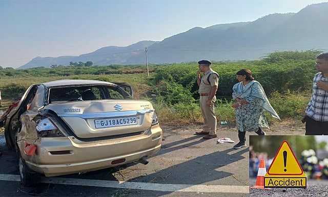 ராஜஸ்தான் மாநிலம் ஜோத்பூருக்கு ஒரே குடும்பத்தை சேர்ந்த 5 பேர் காரில் சென்று கொண்டிருந்தனர். அப்போது அந்த கார் சிரோஹி மாவட்டத்தில் உள்ள பிர்வார்-பிண்ட்வாரா நெடுஞ்சாலையில் சென்ற போது டயர் வெடித்ததில் கார் சாலையில் கவிழ்ந்தது.