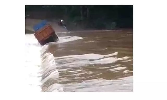 அதாவது விபத்தில் ராஜேஷ் ஹரிகந்த்ரா, சுனில், ராஜு, சிவானந்தா, தினேஷ் ஆகிய 5 பேர் மீட்கப்பட்டனர். லாரி தண்ணீரில் அடித்துச் செல்லப்பட்டு மூழ்கியதும் அவர்கள் லாரி மீது ஏறி நின்று கொண்டு காப்பாற்றும்படி கூச்சலிட்டனர். அப்போது அங்கு மோட்டார் படகில் சென்று பேரிடர் மீட்பு படையினர் கயிறுகள் மூலம் 5 பேரையும் பத்திரமாக மீட்டனர். லாரி டிரைவர் சந்தீப் என்பவர் மாயமானார். அவரை தீயணைப்பு மற்றும் பேரிடர் மீட்பு படையினர் தேடிவருகிறார்கள். மாநிலத்தில் தொடர்ந்து மழை பெய்து வருவதால் மக்கள் கவலை அடைந்துள்ளனர்.