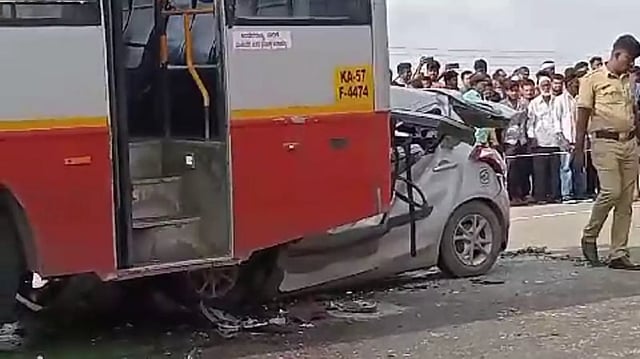 அவர்களுக்கு முன்னால் கே.எஸ்.ஆர்.டி.சி.(அரசு) பஸ் பெங்களூரு நோக்கி வந்து கொண்டிருந்தது. அந்த பஸ் திடீரென அங்குள்ள ஒரு தனியார் மருத்துவக்கல்லூரி முன்பு நின்றது. அதை சற்றும் எதிர்பாராத கார் ஓட்டுனர் உடனடியாக காரை நிறுத்த முயன்றார்.