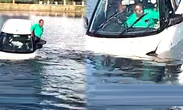 தெலுங்கானா மாநிலம் ஜனகாம நகரில் 2 இளைஞர்கள் டிரைவிங் கற்றுக் கொள்வதற்காக காரில் சென்று கொண்டிருந்தனர். அப்போது எதிர்பாராத விதமாக டிரைவர் இருக்கையில் இருந்த இளைஞர் பிரேக்கிற்கு பதிலாக ஆக்சிலரேட்டரை அழுத்தியுள்ளார். இதனால் கட்டுப்பாட்டை இழந்த கார் சாலையோரம் இருந்த குளத்தில் பாய்ந்தது.