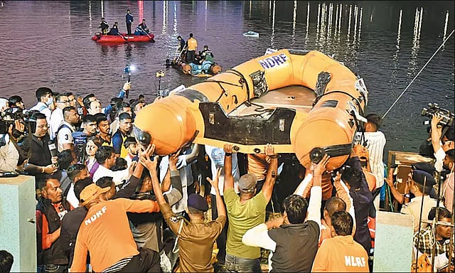 குஜராத் மாநிலம் வதோதராவுக்கு பள்ளி மாணவர்கள் மற்றும் ஆசிரியர்கள் உல்லாச பயணமாக வந்தனர். அவர்கள் அனைவரும் அங்குள்ள ஹர்ணி ஏரியில் படகு சவாரி மேற்கொண்டனர். அப்போது, திடீரென படகு கவிழ்ந்தது. இதில் படகில் இருந்த அனைவரும் தண்ணீரில் விழுந்து தத்தளித்தனர் இதுபற்றி உடனடியாக தீயணைப்பு துறையினருக்கு தகவல் கொடுக்கப்பட்டது. தீயணைப்பு துறையினர்கள் வருவதற்குள் 12 மாணவர்கள் மூச்சுத்திணறி பலியானார்கள்.