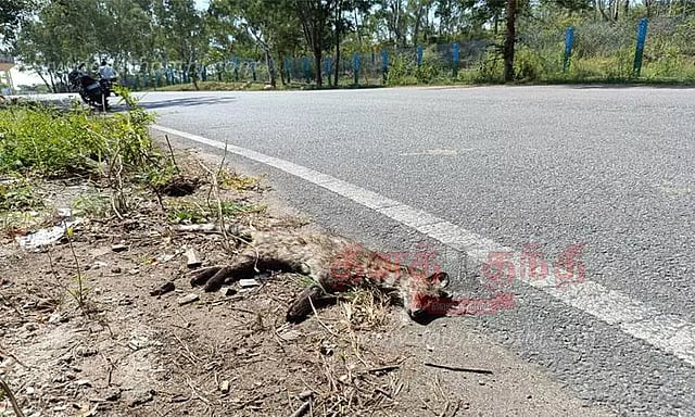 அப்போது சாலையை கடக்க முயன்றுள்ளது. இதில் அந்த வாகனம் மோதி கழுதைப்புலி செத்துள்ளது. செத்தது 3 வயது கழுதைப்புலியாகும், என்றார்.