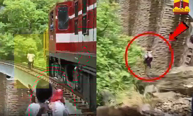 அப்போது திடீரென பாலத்தின் அருகே ரெயில் வந்துகொண்டிருந்தது. ரெயில்வே பாலத்தில் நின்று செல்பி எடுத்துக்கொண்டிருந்த தம்பதிக்கு விலகி நிற்கவோ, மறுமுனையை அடையவோ நேரம் இல்லை. இதனை அறிந்த தம்பதி, ரெயிலின் மீது மோதுவதை விட கீழே குதித்துவிடலாம் என எண்ணி 90 அடி பள்ளத்தில் கீழே குதித்தனர்.