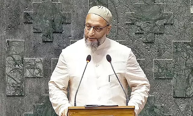 ஐதராபாத்தில் இருந்து 5-வது முறையாக எம்.பி.யாக தேர்ந்தெடுக்கப்பட்ட அகில இந்திய மஜ்லிஸ் கட்சி தலைவர் அசாதுதின் ஒவைசி, உருது மொழியில் பதவிப்பிரமாணம் எடுத்துக் கொண்டார். முதலில், சில பிரார்த்தனை வாசகங்களை வாசித்தார். பதவியேற்பின் இறுதியில், 'ஜெய் தெலுங்கானா, ஜெய் பீம், ஜெய் மீம்' என்று கோஷமிட்டார். அத்துடன், மேற்கு ஆசியாவில் போர் நடந்து வரும் பிராந்தியத்தை வாழ்த்தி (ஜெய் பாலஸ்தீனம்) முழக்கமிட்டார். அதற்கு ஆளுங்கட்சி தரப்பில் கடும் எதிர்ப்பு எழுந்தது.
