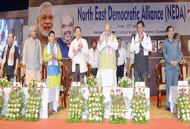 நேடா எனப்படும் வடகிழக்கு மாநில ஜனநாயக கூட்டணியின் தேர்தல் உத்திகள் குறித்தான கூட்டத்தில் கலந்து கொண்ட அமித் ஷா தற்போது ஐந்து மாநிலங்களில் பாஜக கூட்டணி ஆட்சி செய்கிறது. வரும்காலத்தில் அனைத்து எட்டு மாநிலங்களிலும் ஆட்சி செய்வோம் என்றார் அமித் ஷா. ஆறுகட்சிகள் இப்போது கூட்டணியிலுள்ளன.