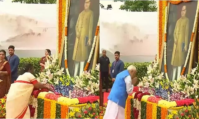 இந்த நிலையில், டெல்லி நாடாளுமன்ற வளாகத்தில் அமைந்துள்ள அம்பேத்கரின் சிலைக்கு பிரதமர் மோடி மற்றும் ஜனாதிபதி திரவுபதி முர்மு ஆகியோர் மாலை அணிவித்து, மலர் தூவி மரியாதை செலுத்தினர். துணை ஜனாதிபதி ஜெகதீப் தன்கரும் மரியாதை செலுத்தினார்.