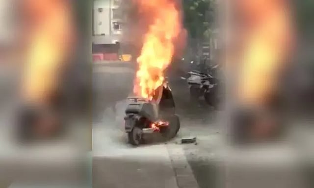மராட்டியத்தின் கிழக்கு விரார் பகுதியில் மின்சார ஸ்கூட்டர் ஒன்றை அதன் உரிமையாளர், வாகன நிறுத்தும் இடத்தில் நிறுத்தி விட்டு சென்றுள்ளார். ஒரு மணிநேரத்திற்கு பின்னர், திடீரென அந்த மின்சார ஸ்கூட்டர் தீப்பிடித்து கொண்டது.
