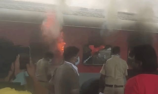 அப்போது ரெயில் நிலையத்தில் நின்றிருந்த ரெயிலின் 3 ஏசி பெட்டிகள் திடீரென தீப்பிடித்து எரிந்ததால் பரபரப்பு ஏற்பட்டது. பி6, பி7, எம்1 ஆகிய 3 பெட்டிகளில் மளமளவெனப் பற்றி எரிந்த தீயை தீயணைப்புத்துறையினர் விரைந்து வந்து அணைத்தனர். பயணிகள் அனைவரும் இறங்கிய பிறகு தீப்பிடித்ததால், நல்வாய்ப்பாக உயிர்ச்சேதம் தவிர்க்கப்பட்டது.