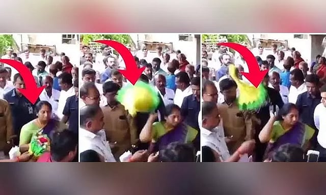 அப்போது திடீரென மற்றொரு அதிகாரி, மந்திரி சுவிதாவுக்கு பூங்கொத்து கொடுத்தார். இலவச கியாஸ் சிலிண்டர் தொடர்பான கேள்விக்கு தாசில்தார் பதில் அளிக்காததால் கோபத்தில் இருந்த மந்திரி பூங்கொத்தை தூக்கி வீசினார். இது தொடர்பான வீடியோ தற்போது சமூகவலைதளத்தில் வைரலாகி வருகிறது.