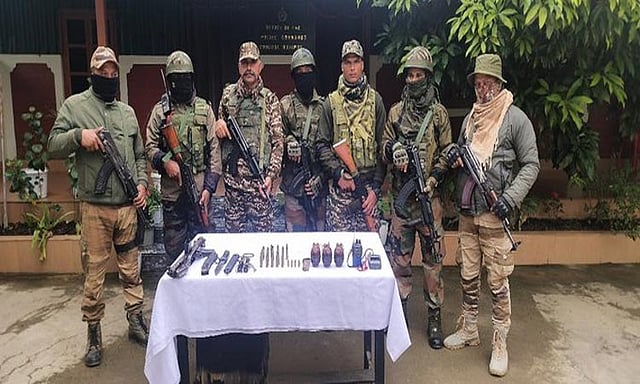 பறிமுதல் செய்யப்பட்ட ஆயுதங்கள் மற்றும் வெடிமருந்துகளில் 3 கைக்குண்டுகள், 4 தோட்டாக்கள், ஒரு பயோனெட் மற்றும் ஒரு வானொலி பெட்டி ஆகியவை அடங்கும் என அதிகாரிகள் தெரிவித்துள்ளனர்.