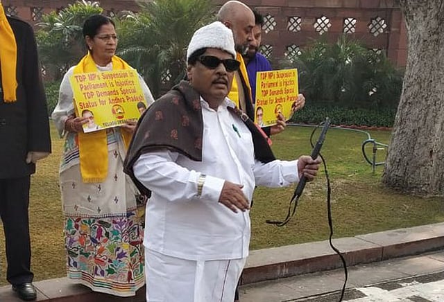 மக்களவையில் கேள்வி நேரம் துவங்கியதும், அவையின் மையப்பகுதிக்கு வந்த நரமல்லி சிவபிரசாத், கையில் இருந்த சாட்டையால் தன்னை தாக்குவது போல சைகைகள் செய்தார். பிற கட்சி எம்.பி.க்கள் பல்வேறு கோரிக்கைகளை வலியுறுத்தி தொடர் அமளியில் ஈடுபட்டதால், அவையை நண்பகல் வரை சபாநாயகர் சுமித்ரா மகாஜன் ஒத்திவைத்தார்.