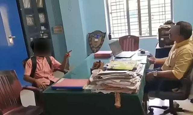 இதனை கூடியிருந்த ஆசிரியர்களில் ஒருவர் அவருடைய செல்போனில் படம் பிடித்து கொண்டார். அதனை பள்ளி நிர்வாகம் மற்றும் அந்த மாணவனின் பெற்றோருக்கு அனுப்பினார்.
