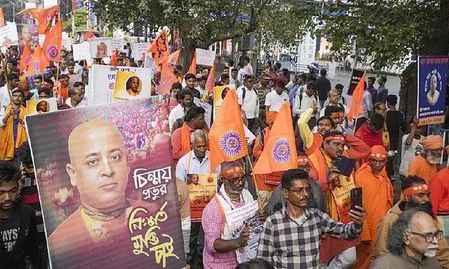 வங்காளதேசத்தில் உள்ள இந்துக்கள் உள்ளிட்ட சிறுபான்மை மக்களின் உரிமைகளை பாதுகாக்க வேண்டும் என முகமது யூனுஸ் தலைமையிலான இடைக்கால அரசுக்கு இந்தியா தொடர்ந்து வலியுறுத்தி வருகிறது. இதனிடையே வங்காளதேசத்தின் தேசிய கொடியை அவமதித்ததாக கூறி, அந்நாட்டில் உள்ள இந்து மத அமைப்பின் ஆன்மிக தலைவர் சின்மய் கிருஷ்ண தாஸ் கைது செய்யப்பட்டார். இதற்கு கண்டனம் தெரிவித்து வங்காளதேசத்தில் உள்ள இந்து அமைப்பினர் போராட்டம் நடத்தி வருகின்றனர்.
