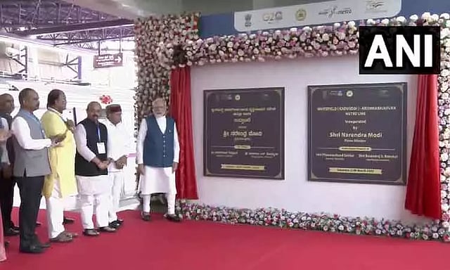 பிறகு அவர் பெங்களூரு வந்த பிரதமர் மோடி , கே.ஆர்.புரம்-ஒயிட்பீல்டு இடையே சுமார் 13 கிலோ மீட்டர் தூரத்திற்கு மெட்ரோ ரெயில் சேவையை தொடங்கி வைத்தார் . அதைத்தொடர்ந்து பிரதமர் மோடி மெட்ரோ ரெயிலில் பயணம் செய்து மகிழ்ந்தார்.