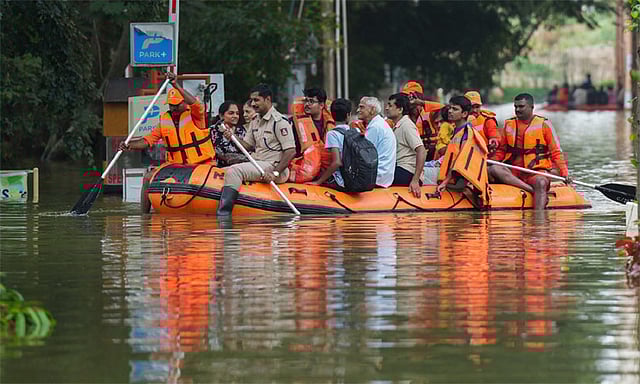 குறிப்பாக ஈஜிபுரா பிரதான சாலை ஆறு போல் மாறியது. ஆர்.ஆர்.நகர் பி.இ.எம்.எல். லே-அவுட்டில் உள்ள அடுக்குமாடி குடியிருப்பு கட்டிடங்களுக்குள் மழைநீர் புகுந்து முழங்கால் அளவுக்கு தேங்கியது. இதனால் அங்கு நிறுத்தப்பட்டு இருந்த கார்கள், மோட்டார் சைக்கிள் நீரில் மூழ்கின. வீடுகளில் இருந்த பொருட்களும் மழைநீரில் சேதம் அடைந்தன. கேந்திரிய விஹார், நாகதேவனஹள்ளி, புலிகேசி நகரிலும் தாழ்வான பகுதிகளில் உள்ள குடியிருப்பு கட்டிடங்களுக்குள் மழைநீர் புகுந்தது. இதனால் அப்பகுதி மக்கள் பெரிதும் பாதிக்கப்பட்டனர். வீடுகளில் இருந்து வெளியேற முடியாமல் தவித்தவர்களை ரப்பர் படகுகள் மூலமாக தேசிய பேரிடர் மீட்பு படையினர் மற்றும் தீயணைப்பு படையினர் மீட்டு கொண்டு வந்தனர்.