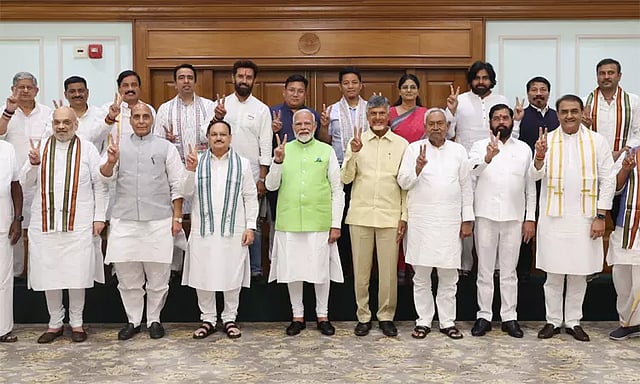 மறுபுறம் பா.ஜனதாவுக்கு எதிராக களமிறங்கி இருந்த இந்தியா கூட்டணியும்234 தொகுதிகளை கைப்பற்றி இருந்தது. அத்துடன் மத்தியில் ஆட்சியமைக்கும் வாய்ப்புகளையும் பரிசீலித்து வந்தது. எனவே எதிர்க்கட்சிகளுக்கு அந்த வாய்ப்பை அளிக்காமல் மீண்டும் மத்தியில் ஆட்சியை உறுதி செய்யும் நோக்கில், புதிய அரசு அமைப்பதற்கான பணிகளை பா.ஜனதா முடுக்கி விட்டது.
