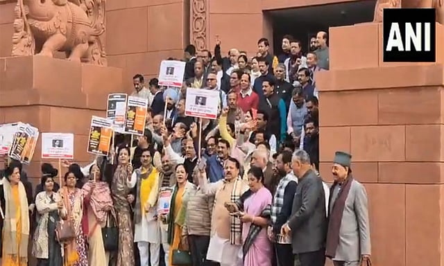 இந்நிலையில், நாடாளுமன்ற வளாகத்தில் காங்கிரசை கண்டித்து பாஜக எம்.பி.க்கள் போராட்டத்தில் ஈடுபட்டனர். காங்கிரஸ் ஆட்சி காலத்தில் அம்பேத்கரை அவமதித்ததாக கூறி பாஜக எம்.பி.க்கள் போராட்டத்தில் ஈடுபட்டனர். கையில் பதாகைகளை ஏந்தியடி காங்கிரஸ் கட்சிக்கு எதிராக கோஷங்களை எழுப்பினர்.