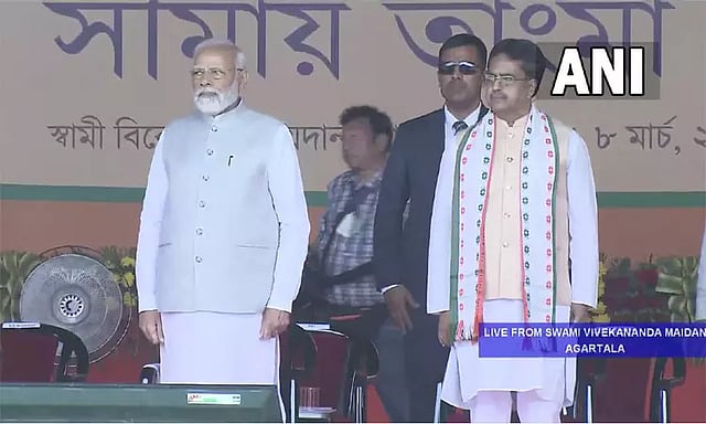இந்த விழாவில் பிரதமர் மோடி, உள்துறை மந்திரி அமித்ஷா, பா.ஜ.க. தேசிய தலைவர் நட்டா மற்றும் பா.ஜ.க ஆளும் மாநிலங்களின் முதல்-மந்திரிகள் பலரும் கலந்துகொண்டனர். ரத்தன் லால் நாத், பிரணாஜித் சிங்கா ராய், சந்தனா சக்மா மற்றும் சுஷந்தா சவுத்ரி ஆகியோர் திரிபுரா மாநிலத்தின் மந்திரிகளாக பதவியேற்றுக்கொண்டனர்.