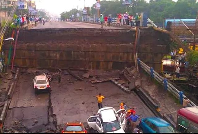 தெற்கு கொல்கத்தாவில் பழமையான பாலமான மெஜெர்காத் இடிந்து விழுந்துள்ளது. பாலம் இடிந்து விழுந்த போது அதன் அடிப்பகுதியில் அதிகமான வாகனங்கள் சிக்கியிருக்கிறது என தகவல் வெளியாகியுள்ளது. விபத்தில் பாலத்தின் மேற்பகுதியில் சென்ற வாகனங்களும் சிக்கியுள்ளது. மேற்பகுதியிலிருந்த வாகனங்கள் மீட்கப்பட்டுள்ளது. கீழ்பகுதியில் சிக்கியுள்ள வாகனங்களை மீட்க தீவிரமான நடவடிக்கைகள் எடுக்கப்பட்டு வருகிறது. மீட்பு குழுவினர் குவிந்து வருகின்றனர். இடிபாடுகள் அகற்றப்பட்டு வருகிறது. இதற்கிடையே பாலத்தின் இடிபாடுகளை அகற்ற வாகனங்களும் வரவழைக்கப்பட்டுள்ளது. இடிபாடுகளுக்குள் சிக்கி ஐந்து பேர் வரையில் உயிரிழந்து இருக்கலாம் என அஞ்சப்படுகிறது. மிகவும் பழமையான பாலம் மழை காரணமாக விழுந்ததா? முறையான பராமரிப்பு இல்லாமல் விழுந்ததா என்ற கேள்வியும் எழுகிறது. பாலம் இரண்டடுக்கு பாலமாகும், பாலத்தின் மேற்குப்பகுதி இடிந்து விழுந்து விபத்து நேரிட்டுள்ளது என தெரிவிக்கப்பட்டுள்ளது.