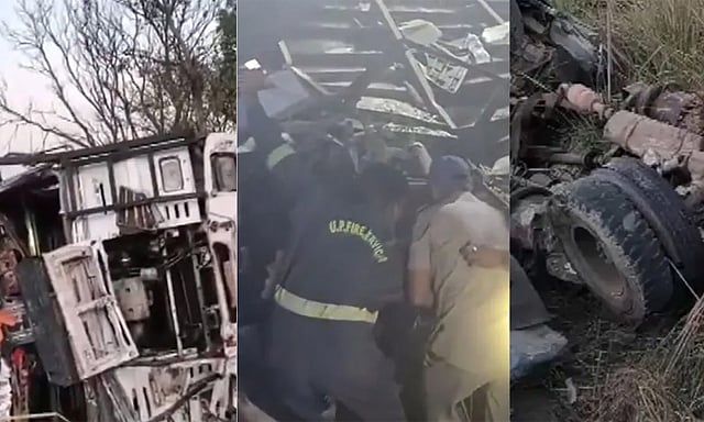 ஹம்பூர் தேசிய நெடுஞ்சாலையில் இன்று அதிகாலை பஸ் சென்றுகொண்டிருந்தது. அப்போது, திடீரென டிரைவரின் கட்டுப்பாட்டை இழந்த பஸ் சாலையில் எதிரே வந்த லாரி மீது மோதியது. இந்த கோர விபத்தில் மணமகனின் தந்தை யூனிஸ் குரேஷி, பஸ் டிரைவர் அசோக் உள்பட 6 பேர் சம்பவ இடத்திலேயே உடல் நசுங்கி உயிரிழந்தனர். மேலும், 10க்கும் மேற்பட்டோர் படுகாயமடைந்தனர்.