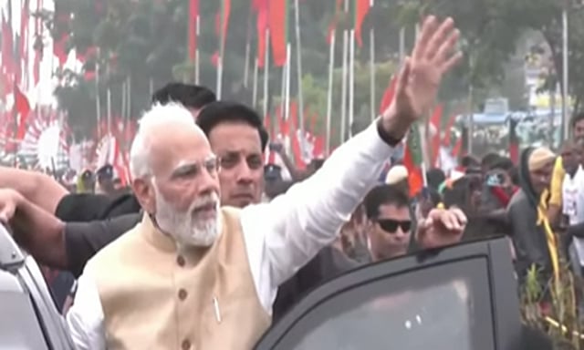 பின்னர் கார் மூலம் அஜந்தா சிக்னல் சந்திப்புக்கு செல்லும் பிரதமர் மோடி, அங்கிருந்து திறந்த வாகனத்தில் ஏறி 'ரோடு ஷோ' நிகழ்ச்சியில் கலந்து கொண்டு தேசிய ஜனநாயக கூட்டணி கட்சி வேட்பாளர்களுக்கு ஆதரவு திரட்ட உள்ளார். இந்த ரோடு ஷோ நிகழ்ச்சி ராஜா தியேட்டர் சந்திப்பு வரை நடைபெற உள்ளது.