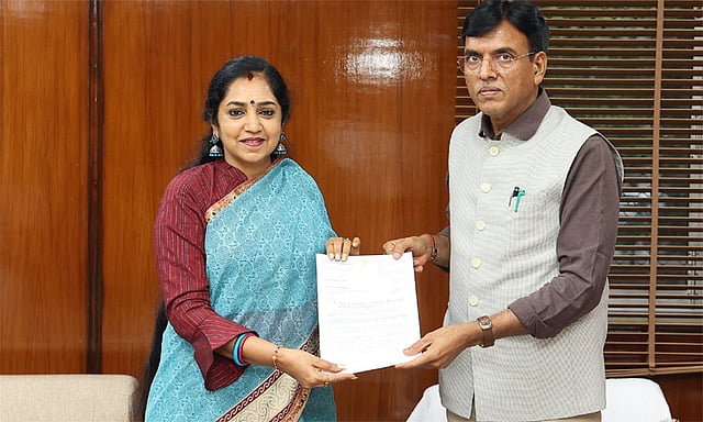 தென்சென்னை நாடாளுமன்ற தொகுதி தி.மு.க. எம்.பி. தமிழச்சி தங்கபாண்டியன், டெல்லியில் இன்று மத்திய தொழிலாளர் மற்றும் வேலைவாய்ப்பு துறை மந்திரி மன்சுக் மாண்டவியாவை நேரில் சந்தித்து பேசினார். இந்த சந்திப்பின்போது பல்வேறு கோரிக்கைகள் அடங்கிய மனுவை மத்திய மந்திரியிடம் தமிழச்சி தங்கபாண்டியன் வழங்கினார்.
