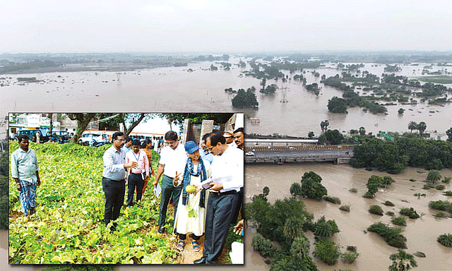 ஆய்வின் போது வெள்ளத்தால் பாதிக்கப்பட்ட விளை நிலங்கள் உள்ள பகுதியில் இறங்கி பயிர் சேதம் குறித்தும், தென்பெண்ணையாற்ற்றின் கரையோர பகுதி பாதிப்புகள் குறித்து ஆய்வு செய்து வெள்ளத்தில் அடித்து செல்லப்பட்டு மீட்கபட்டவர்களிடம் வெள்ளபாதிப்பு குறித்து கேட்டறிந்தனர்.
