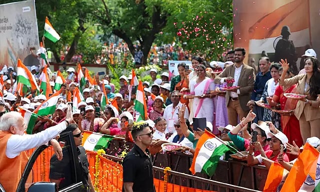 இந்த வாகன பேரணியின்போது, திறந்த காரில் நின்றபடி பிரதமர் மோடி சாலை வழியே சென்றார். அப்போது, திரண்டிருந்த பொதுமக்கள், கட்சி நிர்வாகிகள், தொண்டர்கள் என அனைவரும் பூக்களை தூவி அவரை வரவேற்றனர். இந்நிலையில், ஆபரேஷன் சிந்தூர் நடவடிக்கையை முன்னின்று நடத்திய இந்திய ராணுவ பெண் அதிகாரி கர்னல் சோபியா குரேஷியின் குடும்பத்தினர் இந்த பேரணியில் இணைந்து கொண்டனர்.