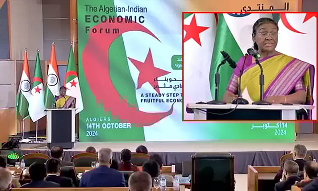 அந்நாட்டுக்கு பயணம் மேற்கொண்ட முதல் இந்திய ஜனாதிபதி என்னும் பெருமையை முர்மு பெற்றுள்ளார். இந்நிலையில், அல்ஜீரியா-இந்திய பொருளாதார மாநாட்டில் கலந்து கொண்டு ஜனாதிபதி முர்மு பேசினார். அவர் பேசும்போது, இன்றைய நிச்சயமற்ற உலக சூழலில், இந்தியாவின் விரைவான வளர்ச்சி கவனிக்கத்தக்க வகையில் அமைந்துள்ளது.