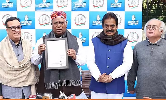 'நாட்டிற்காக நன்கொடை' என்ற பெயரில் நிதி வசூல் செய்யும் இயக்கத்தை காங்கிரஸ் தலைவர் மல்லிகார்ஜுன் கார்கே இன்று தொடங்கி வைத்தார். அதற்கு அடையாளமாக அவர் ரூ.1.38 லட்சம் நன்கொடை வழங்கினார்.