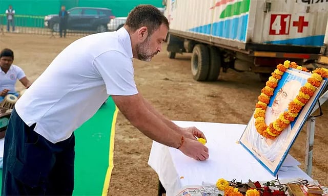 மகாத்மா காந்தியின் 76-வது நினைவு நாள் இன்று நாடு முழுவதும் அனுசரிக்கப்படுகிறது. மகாத்மா காந்தி நினைவு நாளையொட்டி, அவரது உருவப்படத்துக்கு அரசியல் கட்சி தலைவர்கள் மலர் தூவி மரியாதை செலுத்தி வருகின்றனர். இந்தநிலையில் பீகார் மாநிலம் அராரியாவில் இந்திய ஒற்றுமை நியாய யாத்திரையில் உள்ள காங்கிரஸ் எம்.பி., ராகுல் காந்தி, மகாத்மா காந்தியின் நினைவு தினத்தை முன்னிட்டு அவரது உருவ படத்திற்கு மலர் தூவி மரியாதை செலுத்தினார்.