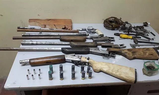 உத்தரபிரதேச மாநிலம் மரூலியில் சட்டவிரோதமாக நாட்டு துப்பாக்கிகள் தயாரித்து விற்பதாக போலீசாருக்கு தகவல் கிடைத்தது. அதன்பேரில் அப்பகுதியில் சோதனையிட்ட போலீசார் அங்கு இயங்கி வந்த நாட்டு துப்பாக்கி தயாரிக்கும் தொழிற்சாலையை கண்டுபிடித்தனர்.
