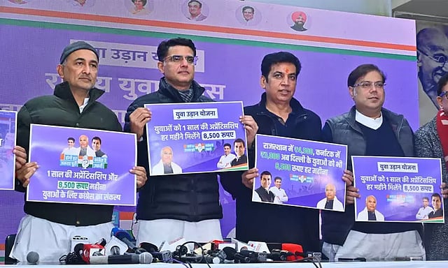 டெல்லி சட்டசபை தேர்தல் பிப்ரவரி 5-ந் தேதி நடக்கிறது. 8-ந் தேதி, வாக்குகள் எண்ணப்படுகின்றன. ஆம் ஆத்மி, பா.ஜனதா, காங்கிரஸ் ஆகிய கட்சிகள் தீவிர பிரசாரத்தில் ஈடுபட்டுள்ளன. இதற்கிடையே, தேசிய இளைஞர் தினத்தையொட்டி, இளைஞர்களுக்கான தேர்தல் வாக்குறுதிகளை காங்கிரஸ் கட்சி வெளியிட்டது. 'யுவ உதான் யோஜனா' என்ற பெயரிலான வாக்குறுதியை வெளியிட்டது.