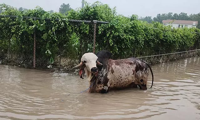 இந்த நிலையில், 2 எருமைகள் மற்றும் விலை மதிப்புமிக்க ஒரு எருது ஆகியவற்றை தேசிய பேரிடர் மீட்பு படை குழுவினர் மீட்டு உள்ளனர்.