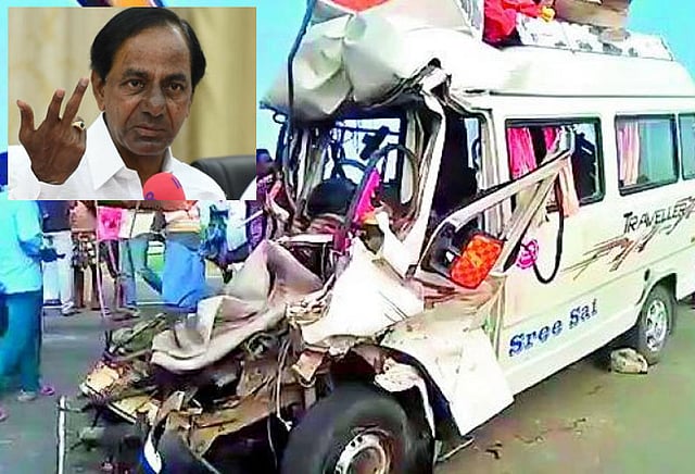 இந்த விபத்தில் உயிர்ப்பலி ஏற்பட்டதை அறிந்ததும் தெலுங்கானா முதல்-மந்திரி சந்திரசேகரராவ் மிகுந்த அதிர்ச்சியும், வேதனையும் அடைந்தார். விபத்தில் பலியானவர்களின் குடும்பத்துக்கு தனது இரங்கலை தெரிவித்த அவர் காயம் அடைந்தவர்கள் விரைவில் குணமடைய வாழ்த்துகளை தெரிவித்தார். மேலும் காயம் அடைந்தவர்களுக்கு தேவையான சிகிச்சை அளிக்க ஏற்பாடு செய்யுமாறு அதிகாரிகளுக்கு அவர் உத்தரவிட்டார்.