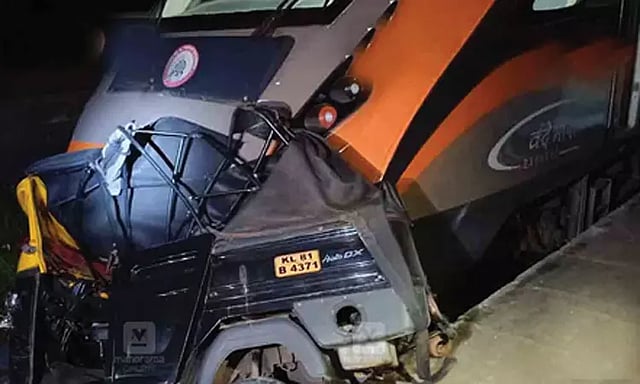 கேரள மாநிலத்தில் காசர்கோடுதிருவனந்தபுரம், மங்களூருதிருவனந்தபுரம் வழித்தடங்களில் வந்தே பாரத் ரயில்கள் இயக்கப்பட்டு வருகின்றன. இந்த இரு ரயில்களுக்கும் மக்கள் மத்தியில் பெரும் வரவேற்பு உள்ளது. இதனால் திருவனந்தபுரத்திலிருந்து பெங்களூரு மற்றும் மதுரைக்கு ஸ்லீப்பர் வந்தே பாரத் மற்றும் நமோ பாரத் ரயில்களையும் இயக்கும் திட்டம் உள்ளது. இந்த நிலையில், காசர்கோட்டிலிருந்து திருவனந்தபுரத்திற்கு நேற்று இரவு சென்ற வந்தே பாரத் ரயில், ஒரு ஆட்டோ மீது மோதியது. வர்க்கலா அருகே வந்தே பாரத் ரயில் வந்து கொண்டிருந்தபோது, தண்டவாள பகுதியில் ஒரு ஆட்டோ நிற்பதை ரயிலின் லோகோ பைலட் பார்த்தார்.