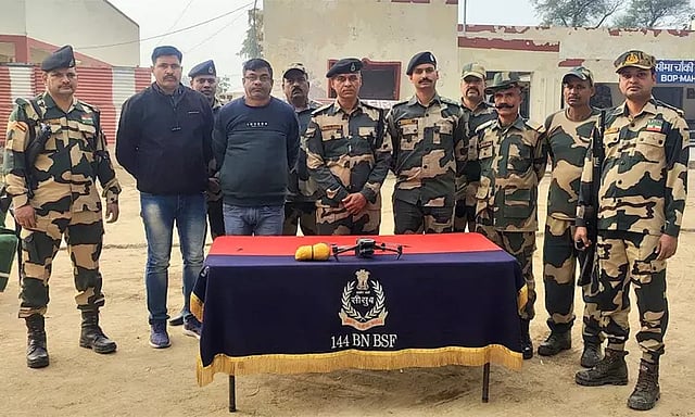 வயல்வெளியில் விழுந்த டிரோனை எல்லை பாதுகாப்புப் படையினர் கைப்பற்றினர். அது சீனாவில் தயாரிக்கப்பட்டது தெரியவந்தது. பாகிஸ்தானில் இருந்து போதைப் பொருட்கள் கடத்தல் கும்பல் இந்த டிரோனை அனுப்பி வைத்திருந்ததும் தெரியவந்துள்ளது. மேலும் அந்த டிரோன் மூலம் அனுப்பப்பட்ட பையில் இருந்து 500 கிராம் ஹெராயின் போதைப்பொருள் பாதுகாப்புப்படையினரால் கைப்பற்றப்பட்டது. இதைப்பற்றி பஞ்சாப் எல்லை பாதுகாப்புப்படையினர் எக்ஸ் வலைதளத்தில் டிரோனின் வீடியோ மற்றும் புகைப்படத்தை பதிவிட்டுள்ளனர்.