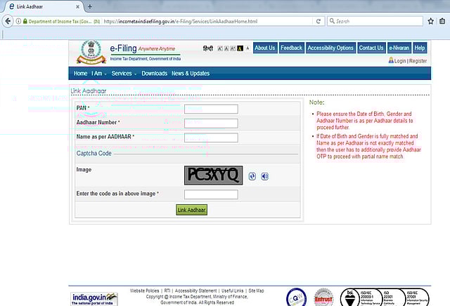 வருமான வரி நிரந்தர கணக்கு எண்ணுடன் (பான்) ஆதார் எண்ணை இணைப்பதும் கட்டாயம் ஆக்கப்பட்டது. இதற்காக, வருமான வரி கணக்கு தாக்கலுக்கான இணையதளத்தில் ஆதார் எண்ணை இணைக்கும் இணைய வசதியானது தொடங்கப்பட்டு உள்ளது.
