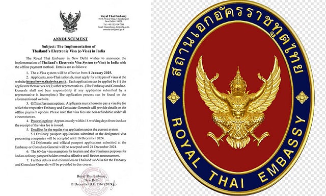 இந்திய பாஸ்போர்ட் வைத்து உள்ளவர்கள், வரும் ஜன., 1 முதல் இ-விசாவை பெற்றுக் கொள்ளலாம் என டெல்லியில் உள்ள ராயல் தாய்லாந்து தூதரகம் அதிகாரப்பூர்வமாக அறிவித்துள்ளது.