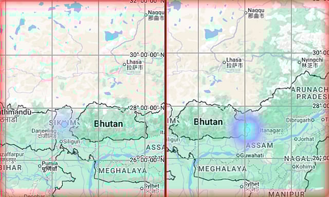 5 கி.மீ. ஆழத்தில் ஏற்பட்ட இந்த நிலநடுக்கம், 27.39 டிகிரி வடக்கு அட்சரேகையிலும், 88.53 டிகிரி கிழக்கு தீர்க்கரேகையிலும் இருக்கும் என முதலில் தீர்மானிக்கப்பட்டது.