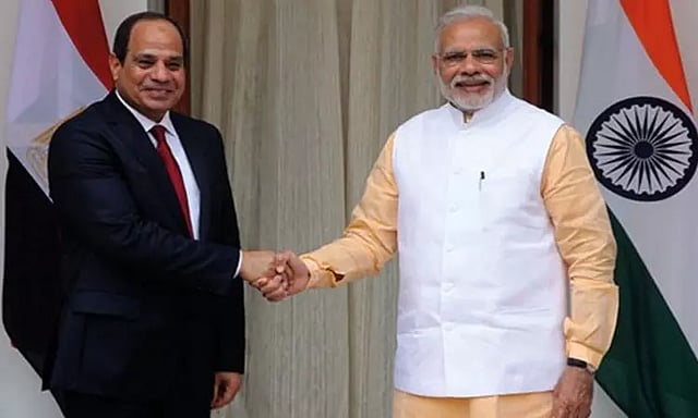 டெல்லியில் உள்ள ஐதராபாத் இல்லத்தில் பிரதமர் மோடியும், எகிப்து அதிபர் சிசியும் இன்று சந்தித்து இருதரப்பு பேச்சுவார்த்தை நடத்துகிறார்கள்.