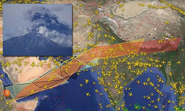 இந்நிலையில் 10,000 ஆண்டுகளுக்குப் பிறகு வெடித்துச்சிதறிய எரிமலையில் இருந்து வெளியேறிய சாம்பல் வளிமண்டலத்தில் பரவி செங்கடல், ஏமன், ஓமன் வழியாக, சுமார் 4,000 கி.மீ. தூரம் நகர்ந்து இந்தியாவை நோக்கி மணிக்கு 120 கிலோமீட்டர் வேகத்தில் நகர்ந்து வருகின்றன