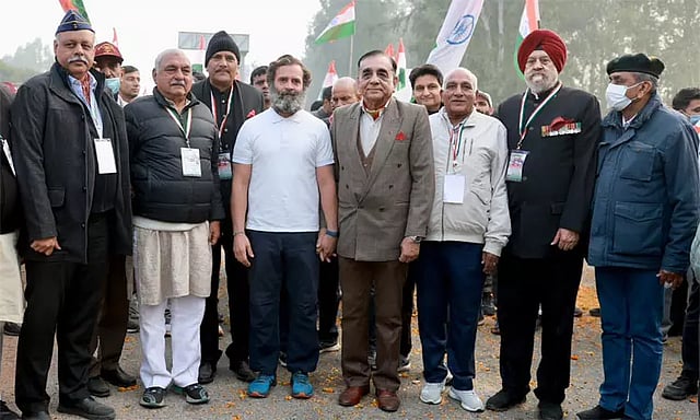 ராகுல்காந்தி தலைமையிலான பாரத் ஜோடோ யாத்திரையில் இன்று முன்னாள் ராணுவ தளபதி தீபக் கபூர் மற்றும் ஓய்வுபெற்ற ராணுவ உயர் அதிகாரிகள் அவருடன் இணைந்து கொண்டனர்.