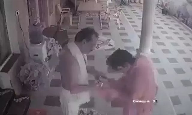 இந்நிலையில், அவரின் வீட்டு வாசலில் சாமியார் வேடமிட்ட ஒருவர் அவரைக் கத்தியால் தாக்குவதைப் போன்ற வீடியோ வெளியாகியுள்ளது.