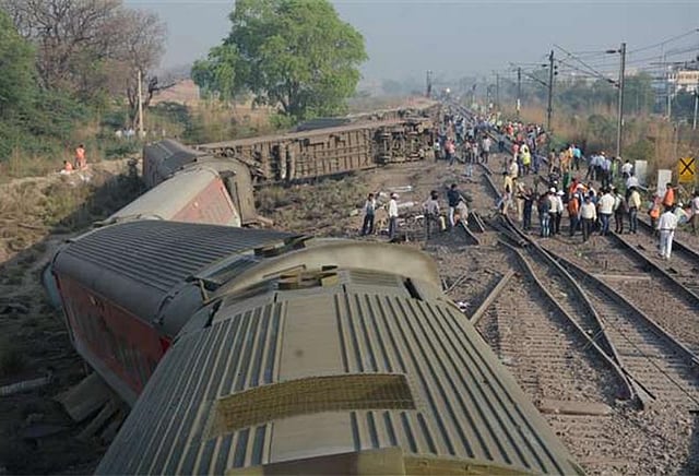 அப்போது திடீரென ரெயிலின் 12 பெட்டிகள் தண்டவாளத்தில் இருந்து தடம் புரண்டன. இந்த விபத்தில் 15 பேர் காயம் அடைந்தனர். இதுபற்றி தகவல் அறிந்ததும் ரெயில்வே அதிகாரிகள், மீட்பு குழுவினர் மற்றும் ரெயில்வே போலீசார் விரைந்து வந்தனர். பின்னர் காயம் அடைந்த 15 பேரையும் மீட்டு ஆஸ்பத்திரிக்கு அனுப்பி வைத்தனர். அங்கு 3 பேர் உயிருக்கு ஆபத்தான நிலையில் சிகிச்சை பெற்று வருகின்றனர்.