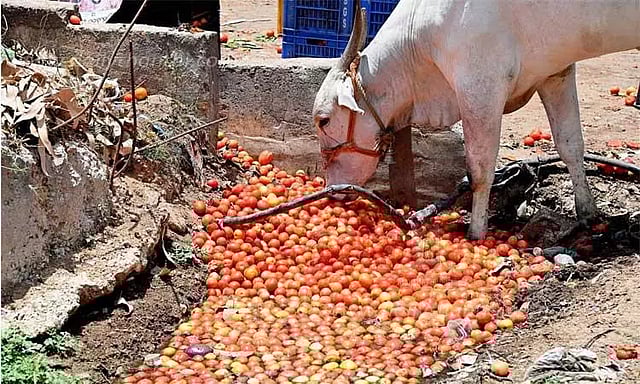 கடந்த ஒரு மாதத்திற்கு முன்பு தங்கத்துக்கு இணையாக பார்க்கப்பட்ட தக்காளி, தற்போது சாலையில் வீசப்பட்டு வருகிறது.