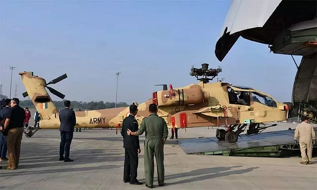 இந்திய ராணுவ விமானப்படைப்பிரிவிற்கு 600 பில்லியன் டாலர்கள் மதிப்பில் 6 அப்பாச்சி தாக்குதல் ஹெலிகாப்டர்களை அமெரிக்காவில் இருந்து வாங்க கடந்த 2020ம் ஆண்டு ஒப்பந்தம் மேற்கொள்ளப்பட்டது. ஒப்பந்தப்படி 2 தவணைகளாக ஹெலிகாப்டர்கள் இந்தியாவிடம் ஒப்படைக்கப்பட வேண்டும்.