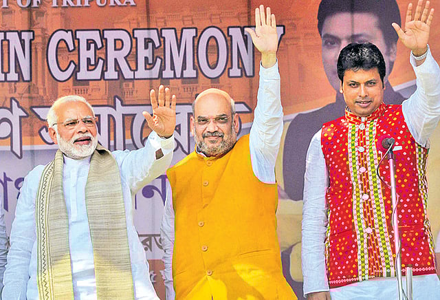 60 உறுப்பினர்களைக் கொண்ட திரிபுரா மாநில சட்டசபைக்கு கடந்த மாதம் தேர்தல் நடந்தது. இதில் பா.ஜனதா கூட்டணி 43 இடங்களில் வெற்றி பெற்று 25 ஆண்டு கால மார்க்சிஸ்ட் கம்யூனிஸ்டு ஆட்சிக்கு முடிவு கட்டியது. இந்த தேர்தலில் பா.ஜனதா மட்டும் 35 தொகுதிகளில் வென்றது. அதன் கூட்டணி கட்சியான திரிபுரா மக்கள் சுய முன்னணி 8 இடங்களில் வெற்றி கண்டது.