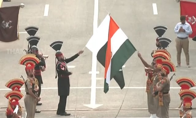 சுதந்திர தினத்தையொட்டி பஞ்சாப் மாநிலம் அமிர்தசரஸில் உள்ள அட்டாரி-வாகா எல்லையில் இன்று காலை கொடியேற்ற நிகழ்ச்சி வெகு விமரிசையாக நடைபெற்றது. இதையடுத்து மாலையில், தேசியக் கொடி இறக்கும் நிகழ்ச்சிக்கு முன்னதாக கண்கவர் கலை நிகழ்ச்சிகள் நடைபெற்றன.