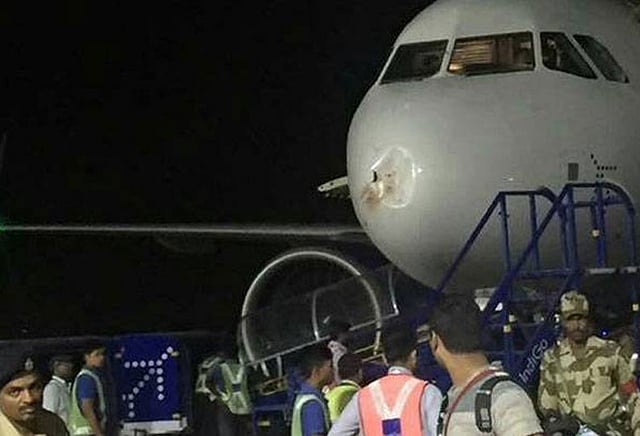 சத்தீஷ்கர் மாநிலம் ராய்பூரில் இருந்து 150 பயணிகளுடன் கொல்கத்தாவுக்கு புறப்பட்டுச்சென்ற இண்டிகோ விமானம் பறவை மோதியதால் அவசரமாக தரையிறக்கப்பட்டது. விமானம் காலை 9.50 மணிக்கு புறப்பட்டுச்சென்ற சிறிது நேரத்தில் பறவை மோதியதையடுத்து மீண்டும் ராய்பூர் விமான நிலையத்திலேயே தரையிறக்கப்பட்டது. பயணிகள் அனைவரும் பத்திரமாக இருப்பதாகவும் விமானத்திற்கும் பெரிய சேதம் எதுவும் இல்லை என்று விமான போக்குவரத்து அதிகாரிகள் தெரிவித்தனர்.